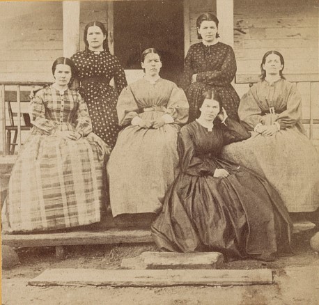 This 1866 photograph shows several of the Hawkins and Downer women who witnessed the Chancellorsville fighting.