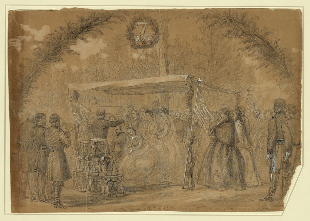 Civilian women, particularly officers’ wives, were frequent visitors to Civil War army winter camps. Their presence boosted morale and strenghened connections to the home front. However, army weddings like this one, which happend in Stafford County on March 18, 1863, were not that common.