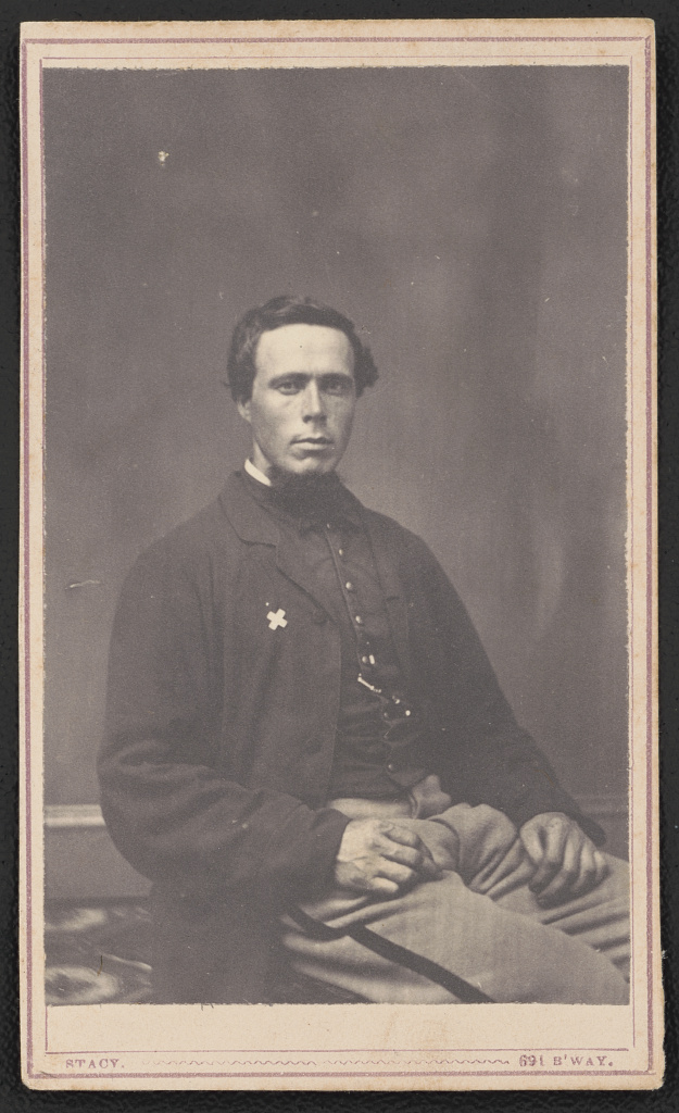 Among those who received the Medal of Honor for courageous actions during the Battle of the Wilderness was Canadian-born 1st Sgt. Carlos H. Rich, 4th Vermont Infantry. Sgt. Rich, only 19 years old when he enlisted in 1861, and originally assigned the rank of corporal, received additional promotions to sergeant and first sergeant. Rich re-enlisted as a veteran volunteer in February 1864. During the May 5, 1864, fighting at the Wilderness, Rich noticed that his company’s first lieutenant, Edward Carter, was wounded. With the help of Carter’s brother Albert, they carried the lieutenant to safety while under fire. The following day, May 6, 1st Sgt. Rich received a wound to the thigh. Admitted to Emory hospital on May 11, 1864, Rich returned to his regiment in September after healing.